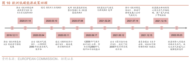 相較Ff55等往期政策,REPowerEU行動(dòng)目標(biāo)更加積極,在維持過(guò)去2030年減少55%溫室氣體排放、2050年實(shí)現(xiàn)氣候中和預(yù)期不變的前提下,調(diào)升2030年可再生能源整體目標(biāo)由40%至45%。REPower EU方案是俄烏危機(jī)后提出的,是針對(duì)歐洲地緣政治與歐洲能源危機(jī)進(jìn)行的方向性、長(zhǎng)期性的調(diào)整和選擇。
