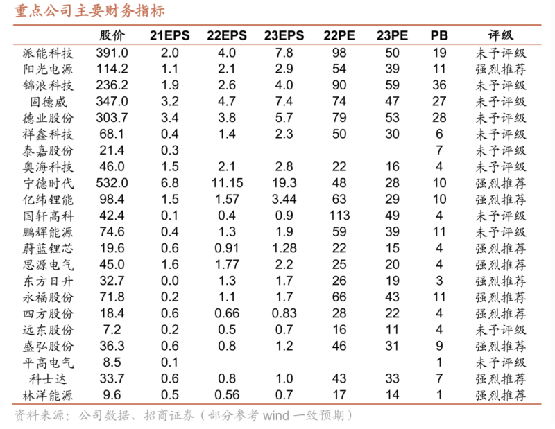 推薦與關(guān)注派能科技、陽(yáng)光電源、錦浪科技、固德威、德業(yè)股份、祥鑫科技、泰嘉股份、奧??萍肌幍聲r(shí)代、億緯鋰能、國(guó)軒高科、鵬輝能源、蔚藍(lán)鋰芯、思源電氣、東方日升、永福股份、四方股份、遠(yuǎn)東股份、盛弘股份、平高電氣、科士達(dá)、林洋能源。