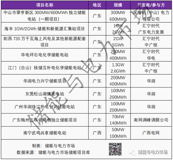 南方電網(wǎng)區(qū)域內(nèi)部分正在開展的獨(dú)立式儲能項(xiàng)目