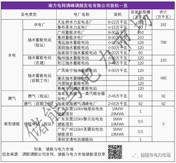 南網(wǎng)調(diào)峰調(diào)頻公司的抽蓄和電化學(xué)儲能項(xiàng)目