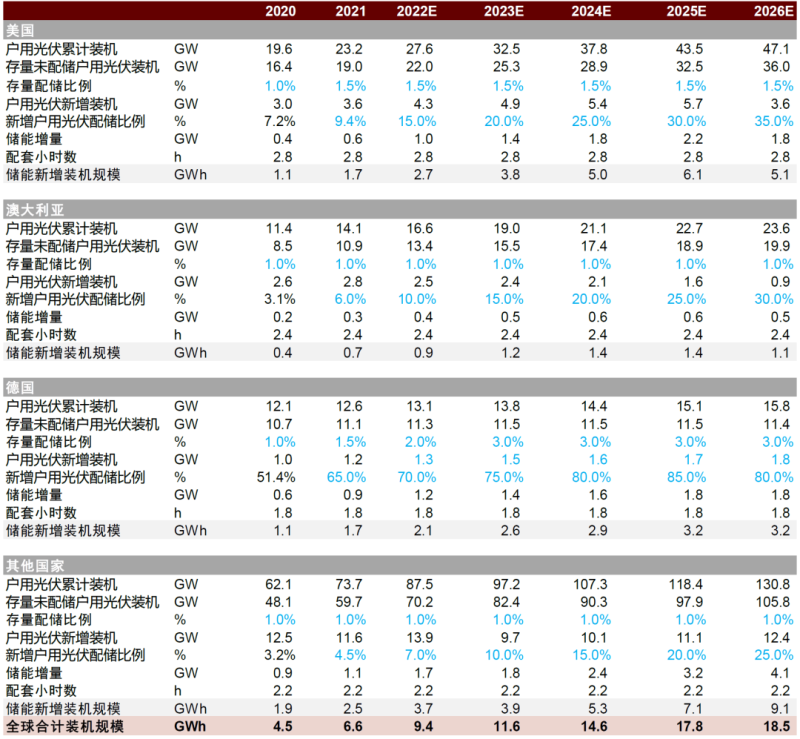 圖表3:2021年美德日澳戶用光伏及儲(chǔ)能滲透率一覽