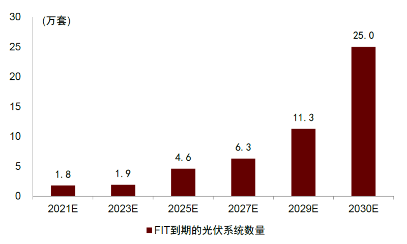 圖表17:日本FIT累計(jì)到期家庭戶數(shù)及裝機(jī)容量