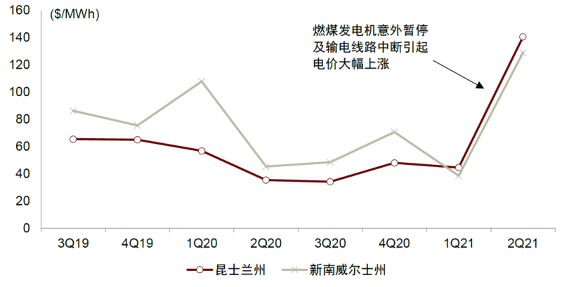 圖表13:昆士蘭州、新南威爾士州電力批發(fā)市場(chǎng)季度均價(jià)