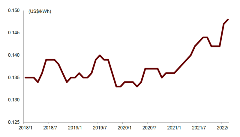 家庭儲(chǔ)能安裝成本下降提升其經(jīng)濟(jì)性。從成本拆解來(lái)看,2021年家庭儲(chǔ)能度電成本近600美元/KWh,其中電池PACK及逆變器成本各占約1/3,2022年受上游碳酸鋰等原材料漲價(jià)影響,鋰電池價(jià)格上漲,我們預(yù)期其將在2023年后逐步回落,預(yù)計(jì)至2026年家儲(chǔ)安裝成本將下降至約500美元/KWh,相比2021年下降22%,其經(jīng)濟(jì)性有望進(jìn)一步提升。