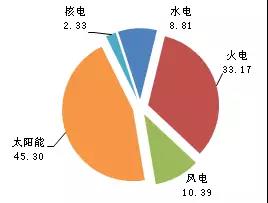 1-10月,全國僅新增太陽能裝機(jī)比重增加。其中,新增水電占新增總裝機(jī)的8.95%,較上年同期下降1.93個百分點;新增火電裝機(jī)比重達(dá)33.3%,較上年同期下降5.2個百分點;新增核電裝機(jī)比重2.18%,較上年同期下降6.9個百分點;新增風(fēng)電占10.7%,較上年同期下降1.85個百分點;新增太陽能發(fā)電裝機(jī)占44.9%,較上年同期增加15.8個百分點。