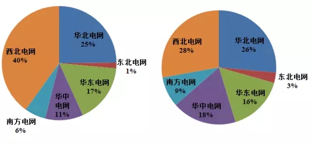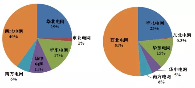 從上圖可以看出,西北電網(wǎng)累計裝機占比40%,而新增裝機占比僅占28%;華中電網(wǎng)累計裝機占比11%,而新增裝機占比則為16%;除此之外,南方電網(wǎng)、東北電網(wǎng)的新增裝機量也明顯高于累計裝機量。