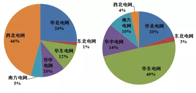 左圖:我國光伏電站累計裝機量區(qū)域分布圖