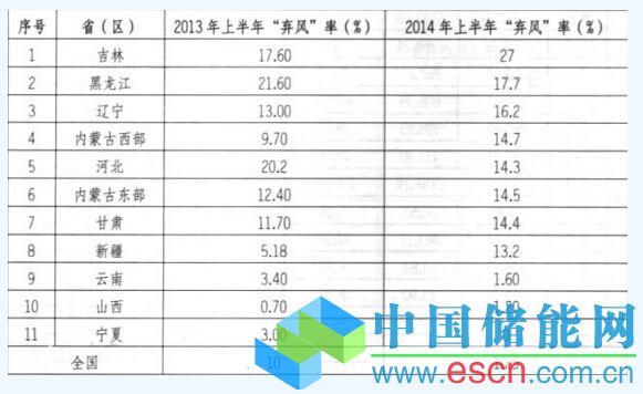 從表1可以看出,全國(guó)風(fēng)電棄風(fēng)率仍然較高?!叭薄钡貐^(qū)“‘棄風(fēng)”現(xiàn)象與去年同期相近,仍然比較突出。西北地區(qū)棄風(fēng)率上升較大。新疆近兩年風(fēng)電并網(wǎng)加快,但外送高壓輸電線路建設(shè)滯后,導(dǎo)致棄風(fēng)率上升。黑龍江省與河北省2014年上半年由于送出通道建設(shè)較好,使得“棄風(fēng)”率有所下降;云南、寧夏“棄風(fēng)”現(xiàn)象比去年同期明顯好轉(zhuǎn),“棄風(fēng)”率已經(jīng)低于2%。