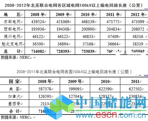 2012年,北美聯(lián)合電網(wǎng)100kV以上的輸電回路長(zhǎng)度約76.07萬km,同比增長(zhǎng)1.0%。其中,東部互聯(lián)電網(wǎng)線路總長(zhǎng)47.11萬km,線路長(zhǎng)度減少676km;西部電網(wǎng)線路長(zhǎng)度為20.81萬km,新增線路長(zhǎng)3238 km;德州電網(wǎng)為4.83萬km,新增線路長(zhǎng)度907 km;魁北克電網(wǎng)為3.83萬km,新增線路長(zhǎng)度1655km。北美聯(lián)合電網(wǎng)輸電回路中,美國大于100kV的輸電回路長(zhǎng)度約為62.75萬km,加拿大為13.08萬km,墨西哥為0.23萬km。