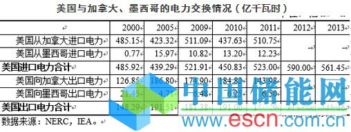 北美聯(lián)合電網(wǎng)中,美國和加拿大之間電量交換大、與墨西哥之間電量交換較小,美國是凈進(jìn)口國,加拿大、墨西哥是凈出口國。2012年,美國進(jìn)出口電量合計(jì)705億kW˙h,同比增加5.4%。美國北部各電力公司和加拿大魁北克、安大略等電力公司之間長(zhǎng)期進(jìn)行電力交換。加拿大以水電為主,最高負(fù)荷出現(xiàn)在冬季,美國以火電為主,最高負(fù)荷出現(xiàn)在夏季,加拿大豐富的水電資源與美國大量燃煤火電之間形成良好的互補(bǔ)調(diào)節(jié)。加拿大在向美國出口低成本水電的同時(shí),也在用電低谷(夜間)進(jìn)口美國的廉價(jià)煤電,用以節(jié)約水電資源,在用電高峰向美國出口。加拿大新不倫瑞克省、魁北克省、安大略省、馬尼托巴省、薩斯喀徹溫省、不列顛哥倫比亞省和美國之間南北聯(lián)絡(luò)線超過100條,其中69kV以上聯(lián)絡(luò)線共有33條。