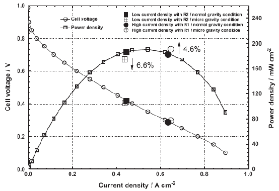不同重力條件下PEMFC電性能變化特征