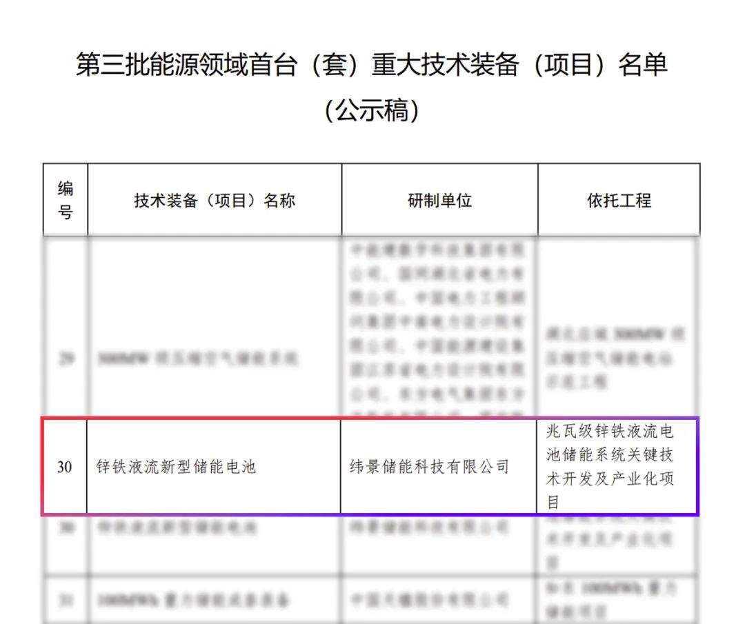 中國儲能網(wǎng)訊:近日,國家能源局發(fā)布《第三批能源領(lǐng)域首臺(套)重大技術(shù)裝備(項目)名單》,緯景儲能科技有限公司研發(fā)并生產(chǎn)的“鋅鐵液流新型儲能電池”作為重大技術(shù)裝備獲得行業(yè)主管部門認(rèn)可。
