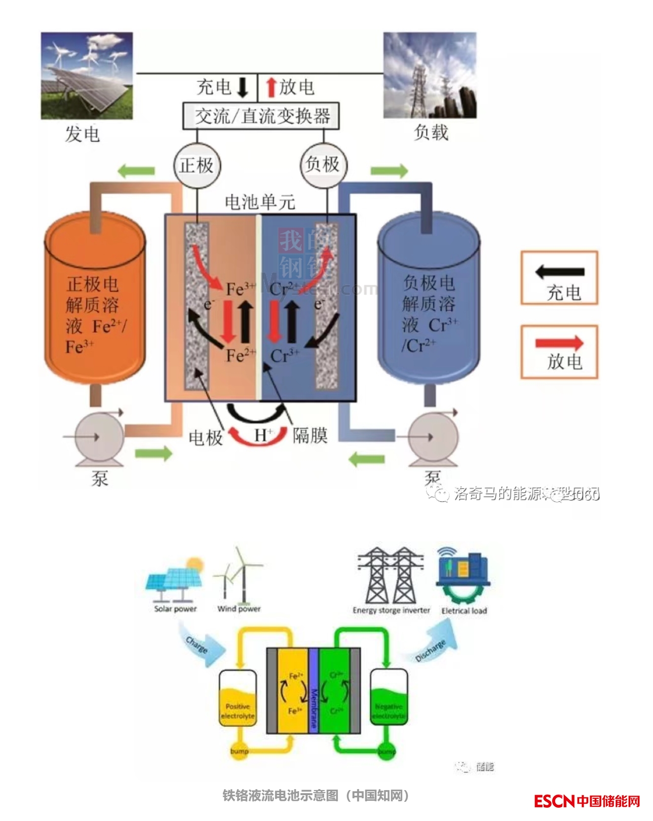 鐵鉻液流電池對(duì)大多數(shù)來說比較陌生,所以先簡單介紹下。顧名思義,它是以價(jià)格低廉、原料豐富的鐵離子和鉻離子作為活性物質(zhì)。