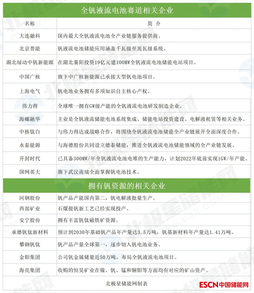 9月份,國內(nèi)鈦白粉龍頭龍佰集團(tuán)表示目前正在進(jìn)行釩電池技術(shù)研發(fā),未來公司將根據(jù)釩電池市場情況,積極推動(dòng)釩電池材料產(chǎn)業(yè)化。