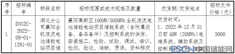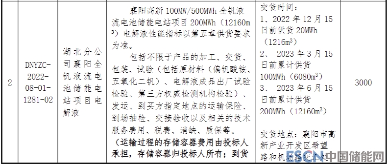 (湖北分公司襄陽全釩液流電池儲能電站項目儲能系統(tǒng)及控制系統(tǒng)設備、電解液采購)