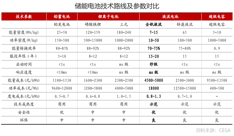 03、釩液流電池相比其他儲能的優(yōu)劣勢
