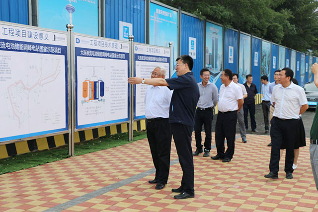 中國儲能網(wǎng)訊:7月6日,國家能源局總工程師韓水、電力司副處長楊旸、干部孫元辛、蔣庭君、電力規(guī)劃設(shè)計總院主任姜士宏、專家李文凱、東北能源監(jiān)管局局長戴俊良、市場處處長張程、遼寧省發(fā)改委處長崔溥等相關(guān)領(lǐng)導(dǎo)及東北電力設(shè)計院相關(guān)專家一行到大連液流電池儲能調(diào)峰電站國家示范項(xiàng)目的建設(shè)現(xiàn)場開展調(diào)研工作,大連市發(fā)改委主任顧強(qiáng)、副主任肖生濱、副巡視員陳亞倫、莊河市長趙永勃、北黃海經(jīng)濟(jì)區(qū)管委會常務(wù)副主任李大民、莊河市常務(wù)副市長李永祥、北黃海經(jīng)濟(jì)區(qū)管委會副主任孔祥東、莊河市副市長王猛等相關(guān)政府領(lǐng)導(dǎo)出席調(diào)研活動。熱電集團(tuán)總經(jīng)理田魯煒、熱電集團(tuán)儲能項(xiàng)目辦副主任鄭文軍、恒流公司副總經(jīng)理宮繼禹、融科儲能公司副總經(jīng)理王東、高級顧問王芝茗等相關(guān)企業(yè)領(lǐng)導(dǎo)陪同調(diào)研。