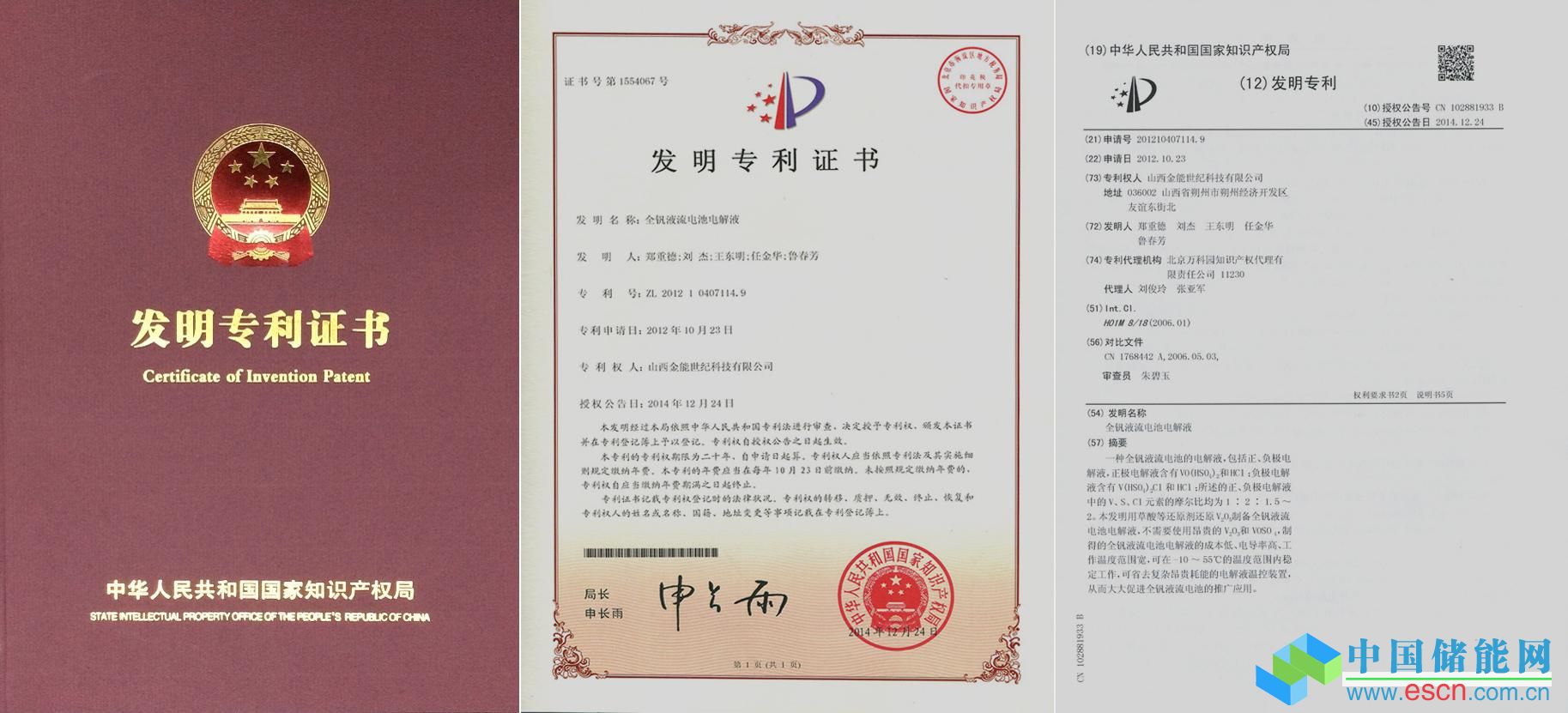 GEC全釩液流電池電解液重大原創(chuàng)發(fā)明專利授權(quán)