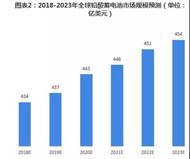 據(jù)統(tǒng)計,2015年鉛酸蓄電池占電池市場一半以上份額約為54.67%。從全球范圍來看,2015年鉛酸蓄電池市場規(guī)模為422億美元,這一市場規(guī)模仍將保持2%-5%的年增長率,預(yù)計2018-2023年,鉛酸蓄電池市場規(guī)模難有大幅度上漲,但仍將維持在400億美元水平上。