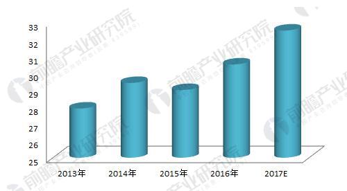 圖表3:2013-2016年全球鐵路機(jī)車用蓄電池行業(yè)市場規(guī)模變化趨勢(單位:億元)