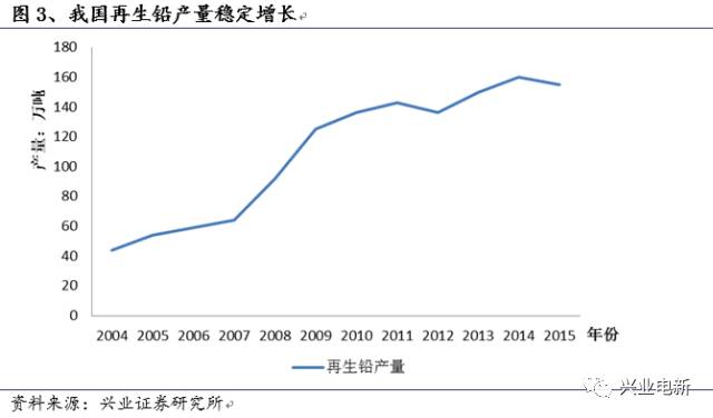 同時(shí),鉛回收利用已經(jīng)是非常成熟的產(chǎn)業(yè),2014年我國再生鉛產(chǎn)量達(dá)到約160萬噸,同比增長6.7%,占鉛產(chǎn)量的38%。隨著鉛回收技術(shù)的進(jìn)一步提升,目前鉛的回收率可以達(dá)到98%以上。