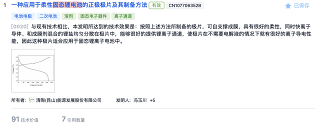 圖4:《一種應(yīng)用于柔性固態(tài)鋰電池的正極極片及其制備方法》發(fā)明文獻(xiàn)(數(shù)據(jù)來源:智慧芽)