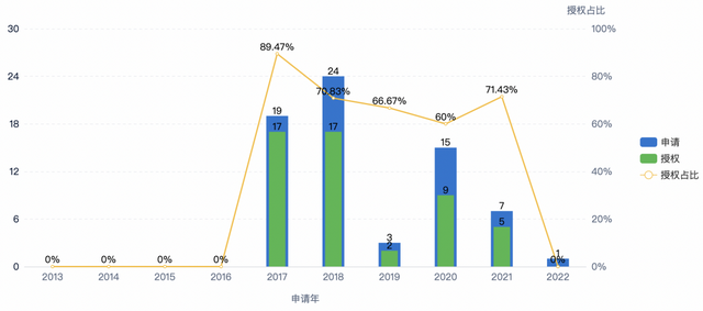 圖1:清陶發(fā)展申請及授權(quán)趨勢(數(shù)據(jù)來源:智慧芽)
