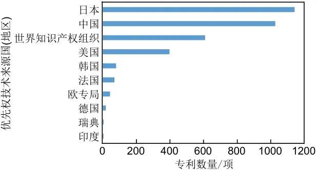 圖6 全球全固態(tài)鋰電池技術(shù)主要優(yōu)先權(quán)國家或地區(qū)分布