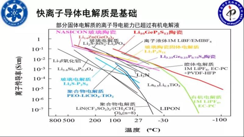 全固態(tài)電池能夠走到今天熱起來,是因?yàn)榇蠹铱吹搅讼M?,就是說固態(tài)電解質(zhì)有了長足的進(jìn)步。今天一部分固體電解質(zhì),它的離子導(dǎo)電能力已經(jīng)遠(yuǎn)超今天的有機(jī)溶劑電解液,這是幾十年來發(fā)展的很大的進(jìn)步,我1988年到物理所跟陳老師做固態(tài)電池。那個時候沒有這么好的電解質(zhì),那時候美國也在做硫化物,后來楊原老師把這個東西帶到物理所,也在物理所整硫化物,但是那個時候的離子電導(dǎo)率沒有今天這么高。今天電解質(zhì)的電導(dǎo)率高到這個程度,特別是低溫情況下比有機(jī)電解液好很多,那有沒有可能做出寬溫區(qū)工作和功率性能更高的固態(tài)電池?