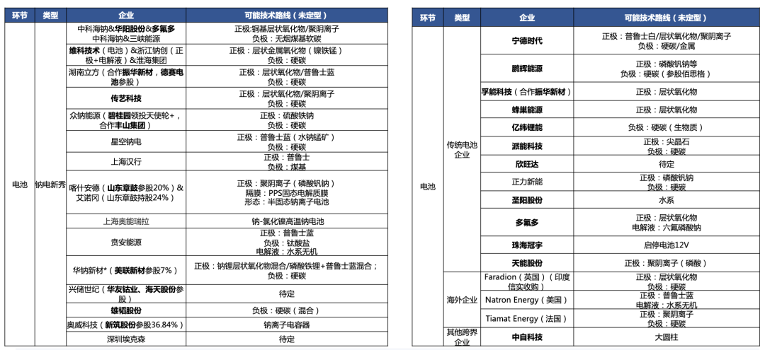 2023年鈉電產(chǎn)業(yè)化趨勢(shì)清晰,產(chǎn)業(yè)鏈參與者增多,傳統(tǒng)鋰電廠(chǎng)商紛紛下場(chǎng),新玩家入局接二連三,未來(lái)或?qū)⑽噤囯娖髽I(yè)參與布局,有利于多方合作推進(jìn)鈉離子電池產(chǎn)業(yè)化進(jìn)程。