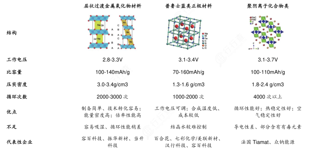 鈉電正極主流技術(shù)方案分為三大類(lèi):層狀氧化物、普魯士藍(lán)和普魯士白(普魯士藍(lán)的類(lèi)似物)、聚陰離子。