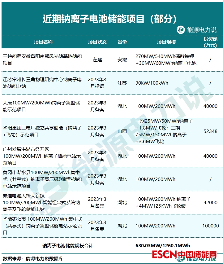 去年,三峽能源安徽阜陽(yáng)南部風(fēng)光儲(chǔ)基地30MW/60MWh鈉離子電池儲(chǔ)能系統(tǒng)EPC招標(biāo)落地;今年3月,大唐100MW/200MWh鈉離子新型儲(chǔ)能示范項(xiàng)目、廣州發(fā)展洪湖市經(jīng)開(kāi)區(qū)100MW/200MWH鈉離子儲(chǔ)能電站示范項(xiàng)目等多個(gè)百兆瓦級(jí)鈉離子電池項(xiàng)目完成備案,鈉離子儲(chǔ)能在國(guó)內(nèi)也拉開(kāi)大儲(chǔ)應(yīng)用的序幕。