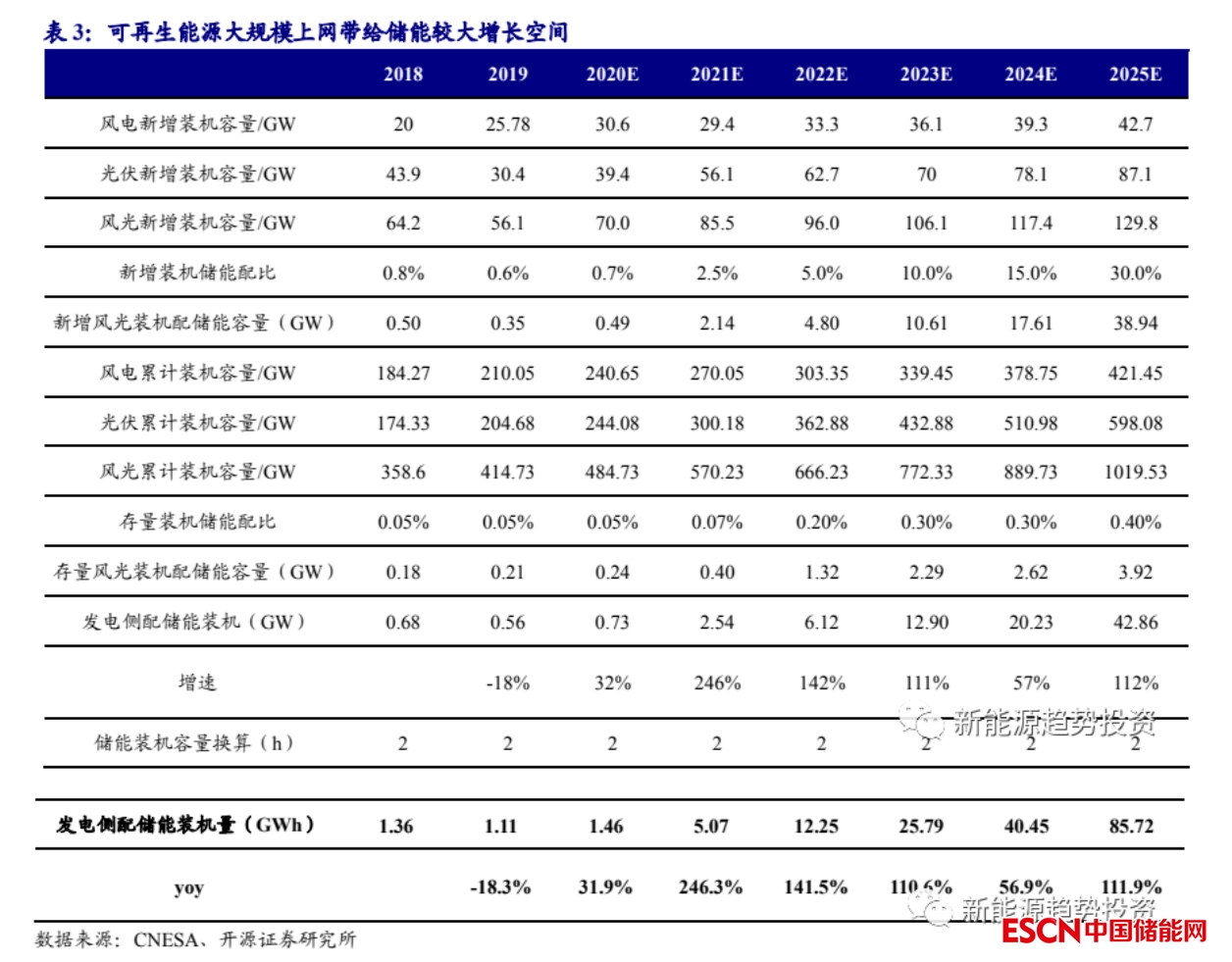地殼中鈉儲(chǔ)量達(dá)2.74%,而鋰儲(chǔ)量僅為0.0065%,且鋰離子電池回收經(jīng)濟(jì)價(jià)值低。鈉離子電池活性材料中不含昂貴的鈷,使其具有更強(qiáng)的可持續(xù)性。我國僅擁有世界鋰資源儲(chǔ)量的5.93%,鋰礦大多位于青藏高原地區(qū),開采難度大,致使我國鋰礦對(duì)外依存度高。鈉離子電池對(duì)我國減少鋰資源對(duì)外依存度具有重要戰(zhàn)略意義。鈉離子電池應(yīng)用前景廣闊:(1)電動(dòng)車市場上,鉛酸電池被替代已成趨勢,鈉離子電池具有低成本、低能量密度、安全性強(qiáng)等特性,是鉛酸電池更好的替代品。(2)隨著十四五期間可再生能源大批量上網(wǎng),電網(wǎng)側(cè)與發(fā)電側(cè)對(duì)儲(chǔ)能的需求愈發(fā)強(qiáng)烈,為鈉離子電池市場化應(yīng)用提供土壤。我們預(yù)計(jì)2021/2022/2023年風(fēng)光新增儲(chǔ)能需求5.07/12.25/25.79GWh,對(duì)應(yīng)增速為246.3%/141.5%/110.6%。