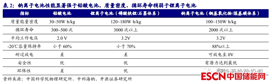 1.4、 鈉電總體強(qiáng)于鉛酸,和鋰電相比各有優(yōu)劣