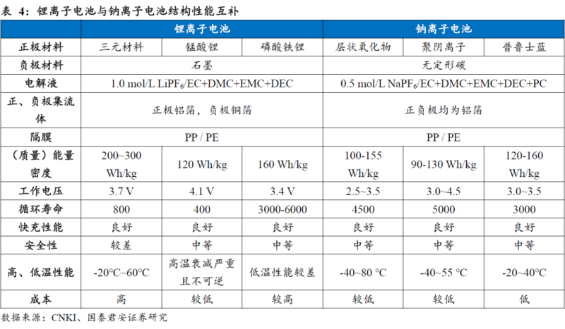 有效補(bǔ)充,部分替代。目前鈉離子電池的理論能量密度和循環(huán)性能不及鋰離子電池,決定其難以完全替代鋰離子電池,而應(yīng)是作為后者的補(bǔ)充和延拓,在一些特殊應(yīng)用條件下實(shí)現(xiàn)部分替代,同時(shí)開(kāi)辟新的應(yīng)用場(chǎng)景。我們認(rèn)為,應(yīng)根據(jù)鈉離子電池的技術(shù)特性,重點(diǎn)關(guān)注其在具體細(xì)分賽道的比較優(yōu)勢(shì),分析其發(fā)展前景和投資價(jià)值。