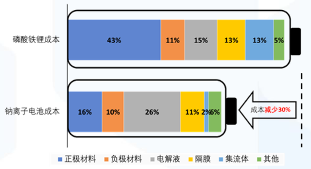 一方面,鈉離子電池成本低廉。據(jù)中科海鈉測算,鈉離子電池材料比磷酸鐵鋰電池低約1/3。