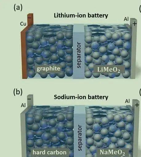 其中,電解液和隔膜基本沿用鋰離子電池體系;集流器正、負(fù)極均可以用鋁箔,而鋰離子電池負(fù)極需要用銅箔(因為鈉離子在負(fù)極不會和鋁離子發(fā)生化學(xué)反應(yīng)),這也減少了鈉離子電池集流器的成本。