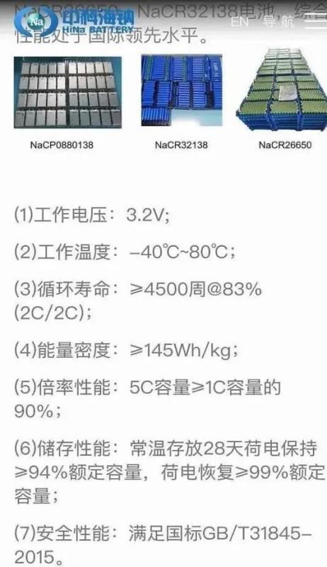 圖2 中科海納鈉離子電池性能(摘自中科海納官網(wǎng))