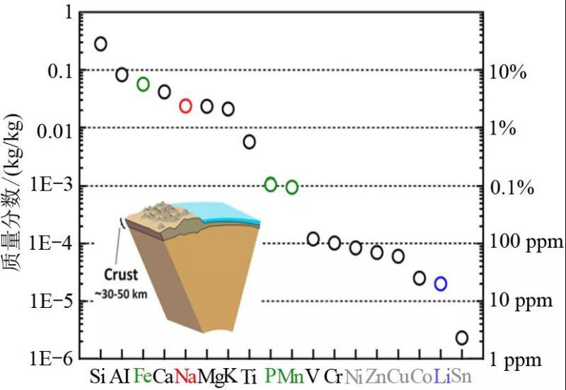 眾所周知,元素周期表中鈉與鋰是處于同一主族且具有相似物理化學性質的金屬元素,地球上鈉資源儲量非常豐富,元素含量約為23000 ppm,豐度位于第6位(圖1),且鈉分布于全球各地,可完全不受資源和地域的限制,所以在資源方面,鈉離子電池比鋰離子電池具有更大的優(yōu)勢。此外,鈉離子與鋰離子在電池體系中具有類似的脫/嵌機制(圖3),對鈉離子電池的研究與開發(fā)可緩解由鋰資源短缺引發(fā)的新能源電池發(fā)展受限的問題。雖然在能量密度等方面與目前的鋰離子電池相比還存在差距,然而在低速電動車和儲能應用中成本和壽命是比能量密度更重要的指標,由此可以判斷,鈉離子電池將在低速電動車、大規(guī)模電力儲能、5G通信基站、數據中心等應用領域擁有比鋰離子電池更大的市場競爭優(yōu)勢。