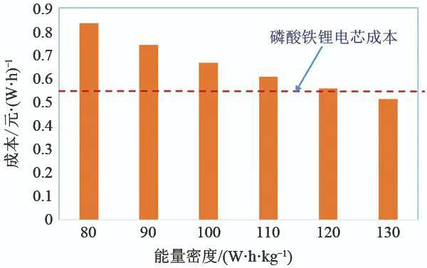 圖2 不同能量密度的鈉離子電池預(yù)估價(jià)格圖