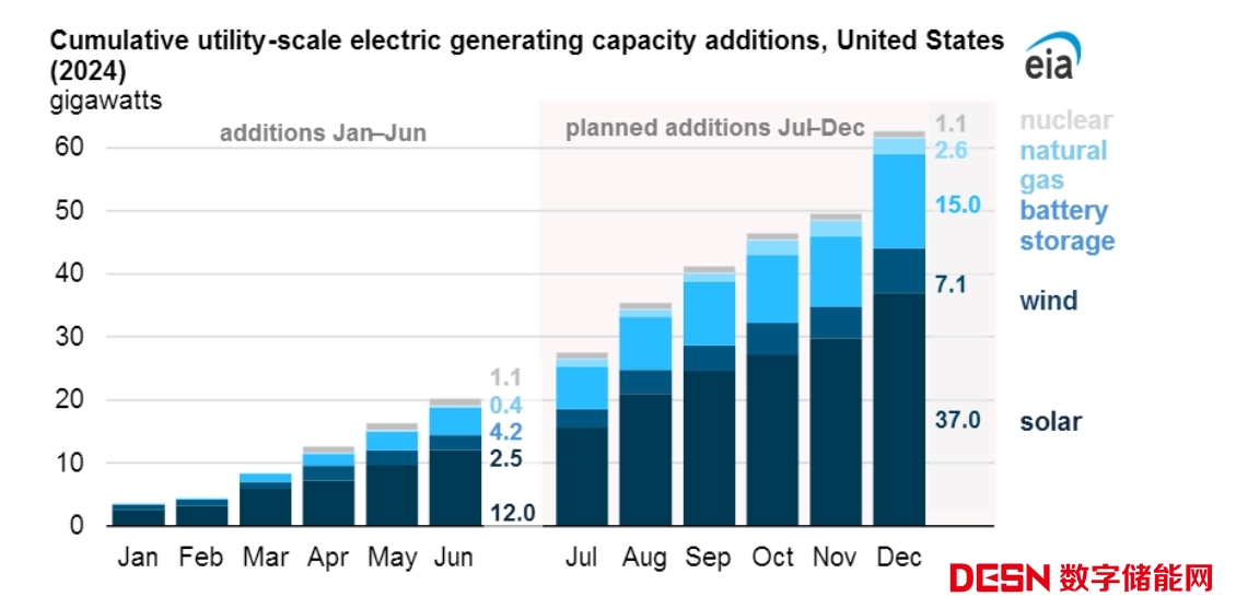 根據(jù)報(bào)告的最新數(shù)據(jù),預(yù)計(jì)美國(guó)今年下半年將再部署42.6GW發(fā)電設(shè)施。