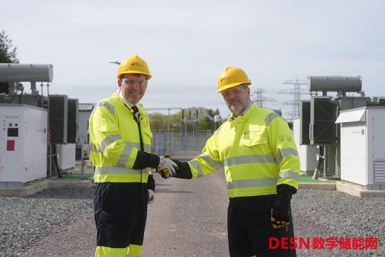 索爾茲伯里的國會議員John Glen (左)出席SSE Renewables公司部署的50MW/100MWh電池儲能系統(tǒng)開通儀式