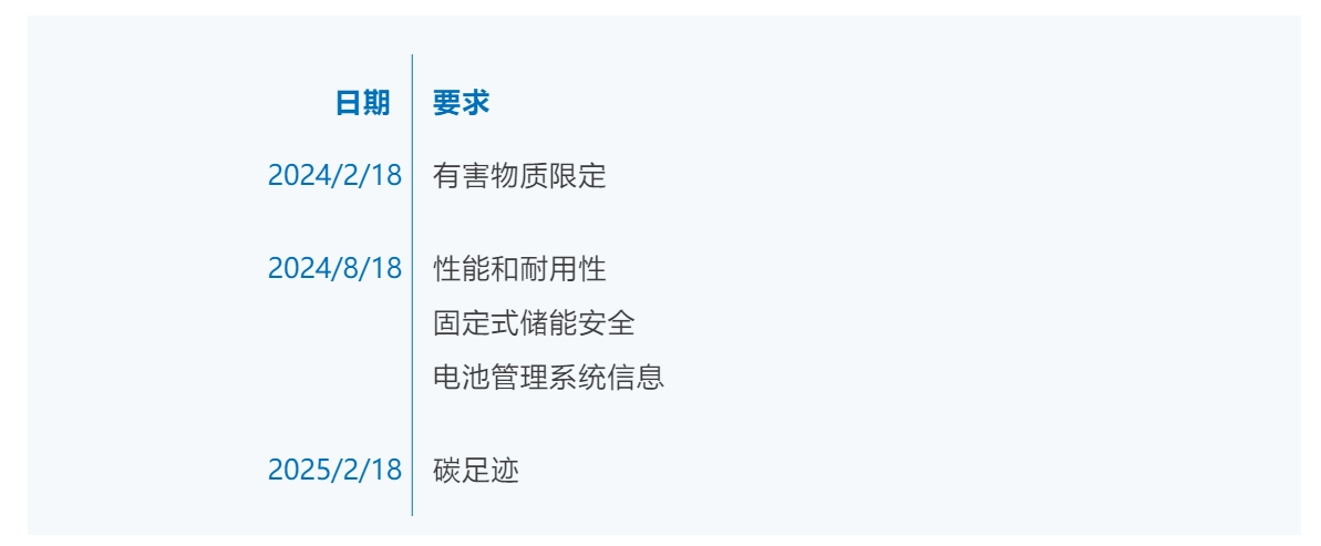 2025年2月以后還會有更多的新要求如盡職調(diào)查,廢舊電池管理,二維碼,電池護(hù)照,可移除和更換,再生材料等要求逐步開始強(qiáng)制。