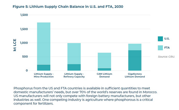 美國(guó)制裁的大多數(shù)電池都是鋰電池,雖然美國(guó)有大量的鋰材料儲(chǔ)備,但還需要其他電池材料,例如磷和石墨。這些材料主要來(lái)自海外市場(chǎng),因此美國(guó)電池制造商在全球范圍內(nèi)競(jìng)爭(zhēng),因此經(jīng)常面臨價(jià)格高昂且供應(yīng)短缺的困境。
