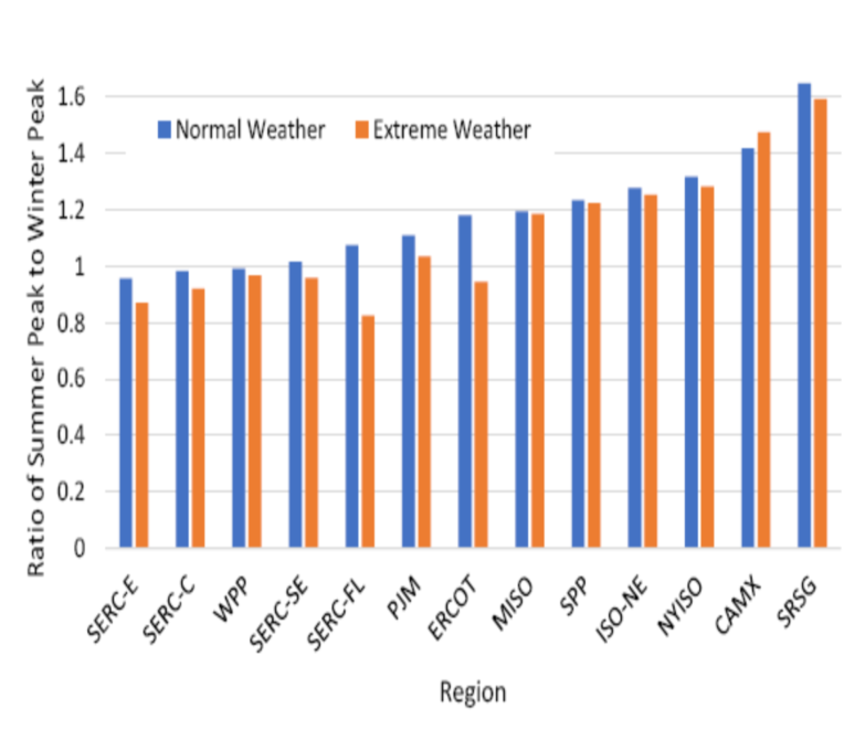 圖13顯示了北美電力可靠性公司在2022年夏季和2022年冬季可靠性評估報告中夏季峰值電力需求與冬季峰值電力需求的對比。除了美國西北地區(qū)之外,美國東南部的幾個地區(qū)現(xiàn)在也進(jìn)入冬季電力需求峰值期間,這些地區(qū)更依賴于電力供暖。
