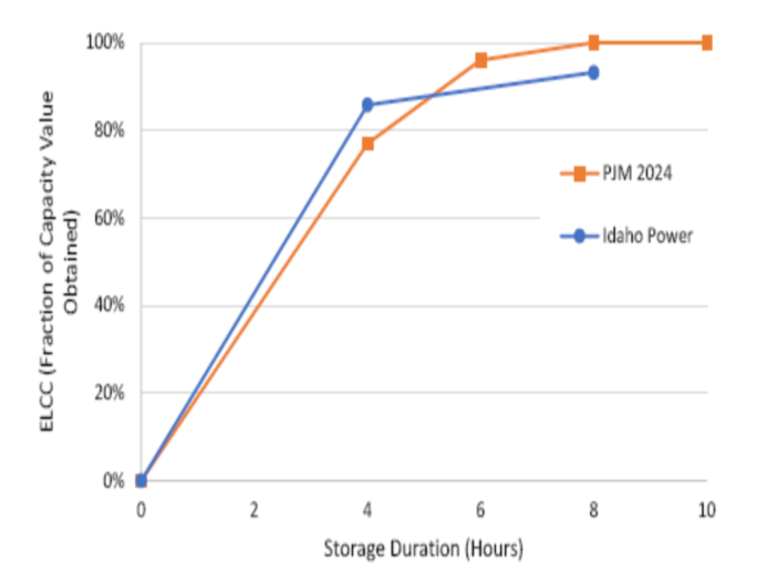 圖6 PJM公司和愛達(dá)荷電力公司使用ELCC的容量值顯示4小時儲能系統(tǒng)附加價值的潛力。