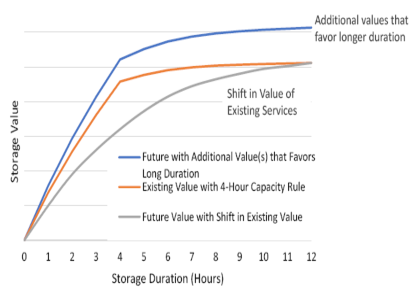 4小時容量規(guī)則是對容量價值和持續(xù)時間之間復(fù)雜關(guān)系的簡化,它反映了儲能市場的近期情況(僅在某些地區(qū))。隨著時間的推移,容量規(guī)則可能會演變,以反映電網(wǎng)運營條件的變化,這可能會改變價值曲線的形狀,并可能要求儲能系統(tǒng)提價更長的持續(xù)時間。