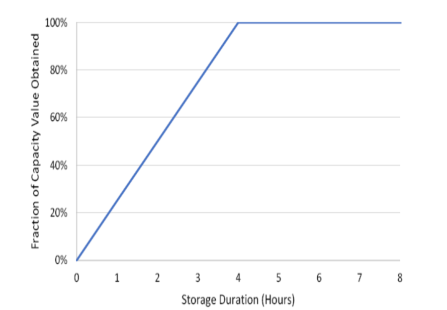 圖2 對于4小時容量規(guī)則的地區(qū)來說,持續(xù)時間超過4小時的儲能系統(tǒng)提供的容量服務(wù)并沒有額外經(jīng)濟回報。