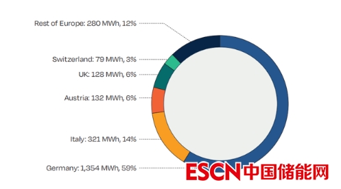 另外,當(dāng)?shù)丶矣秒姵匕惭b規(guī)模2020年為3GWh左右,2021年超過5GWh,今年已突破9GWh。2021年歐洲家用電池儲(chǔ)能市場增長了一倍多,達(dá)到2.3GWh,其中德國市場份額最大,占比達(dá)59%,新增儲(chǔ)能容量1.3GWh,年增長率為81%,意大利在2021年新增裝機(jī)321MWh,年增長率240%。