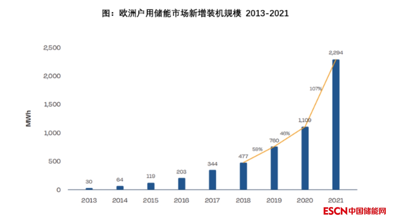 歐洲2022年家用電池儲(chǔ)能系統(tǒng)安裝數(shù)量已超過百萬組,電池規(guī)模超過9GWh